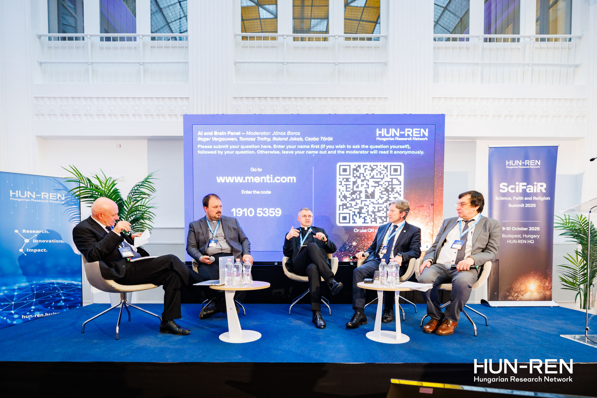 Following the lecture, an AI-focused panel discussion featured Monsignor Tomasz Trafny of the General Secretariat of the Synod; Roland Jakab, CEO of HUN-REN; and theologian Csaba Török, Parish Priest of the Primatial Basilica of the Assumption of the Blessed Virgin Mary and St Adalbert in Esztergom. The panellists explored questions of consciousness and artificial consciousness, debating whether consciousness is merely a product of brain function or something more that can exert top-down influence on the body. Several speakers offered examples of consciously modulating bodily processes, such as breathing and heart rate.