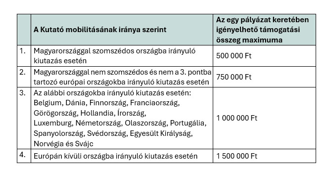 A pályázati felhívás keretében kizárólag személyes részvétellel megvalósuló kutatói mobilitási tevékenység, program, esemény stb. támogatható.
