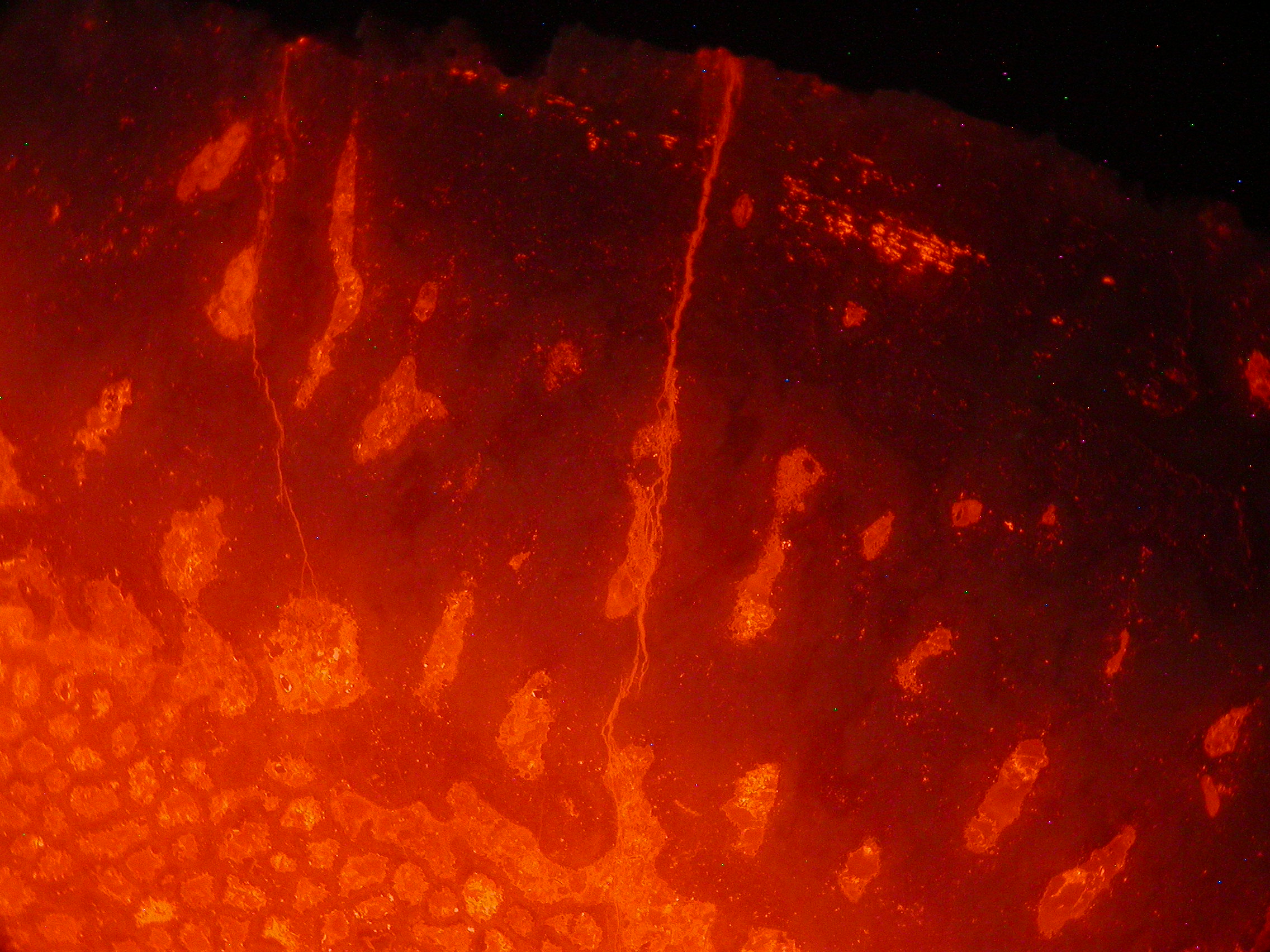 A kutatók elektronszórási diffrakciós (EBSD) vizsgálattal térképezték fel a kalcitkristályok belső szerkezetét, amely pontos képet ad a kristályrács orientációjáról és a szemcsék térbeli elrendeződéséről. A metszeteken kirajzolódott mintázat alapján azt feltételezték, hogy az aptychus keménységét geometriai okokra lehet visszavezetni. A kutatók a felszíni mintázat kombinatorikai jellemzőit elemezték, és statisztikai módszerekkel következtettek arra, milyen lehetett a mélyben húzódó, háromdimenziós szerkezet. Eredményeik alapján az aptychusban egy Bouligand-típusú elrendezést azonosítottak – olyan spirális, réteges struktúrát, amelyet más élőlényeknél, például rákok és skorpiók páncéljában vagy a halpikkelyekben is kimutattak.